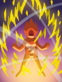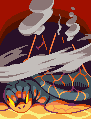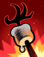EFFECT: Summons a unique NPC onto the field to attack independently of your BIT. It will teleport in after a short delay and send out a flaming claw projectile that slowly sweeps across the board, until it reaches the end of the board or impacts an enemy which deals immense damage. It will teleport once more to a random tile on your BIT’s side before attacking again, and afterwards will teleport away.