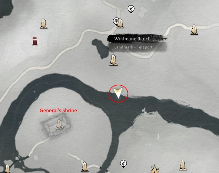 Head to this spot North-East of the General’s Shrine. Closest teleport is Wildmane Ranch if you have unlocked it.