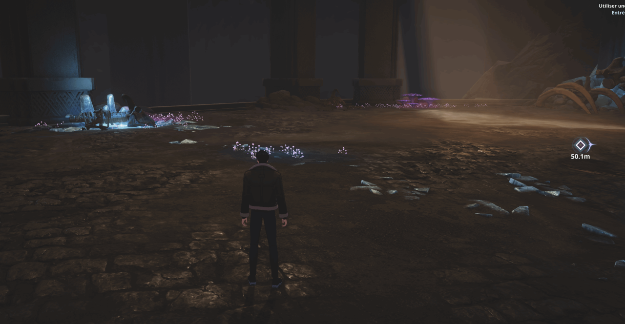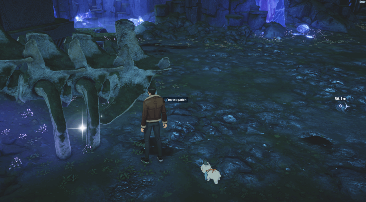 For the second one, look for the crystals. It will be in the skeleton of a monster to the left of them