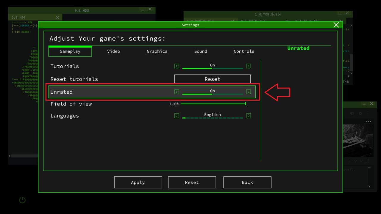 3. Launch the game, go to Settings in the main menu, and toggle the Unrated option on or off.