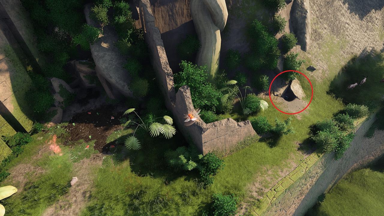 The other way is above on a ledge. You will see some Armadillos near a dirt patch. Turn unto an Armadillo here and start sniffing, you will find a tunnel you can dig into.
