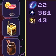 The bar offers drinks that provide bonuses for the next mission. Drinks exist in multiple quality tiers with increasing prices.