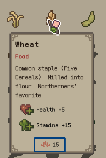 For example, this is what should appear in the menu, when hovering over “Wheat.”
