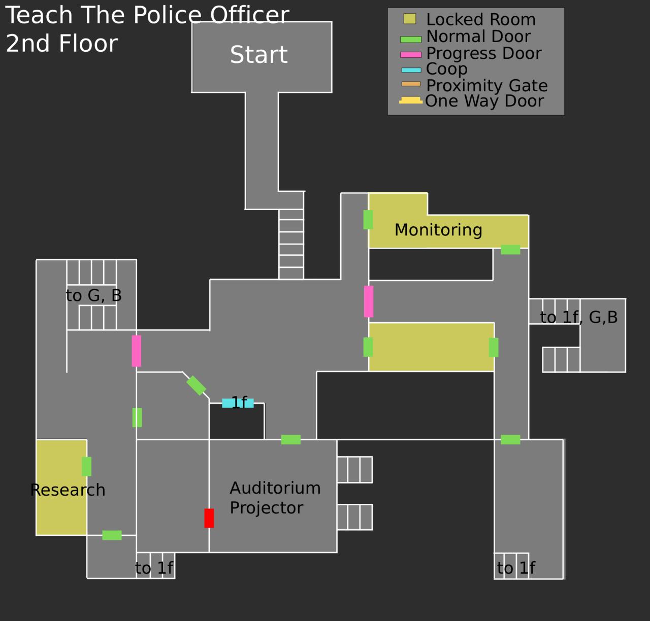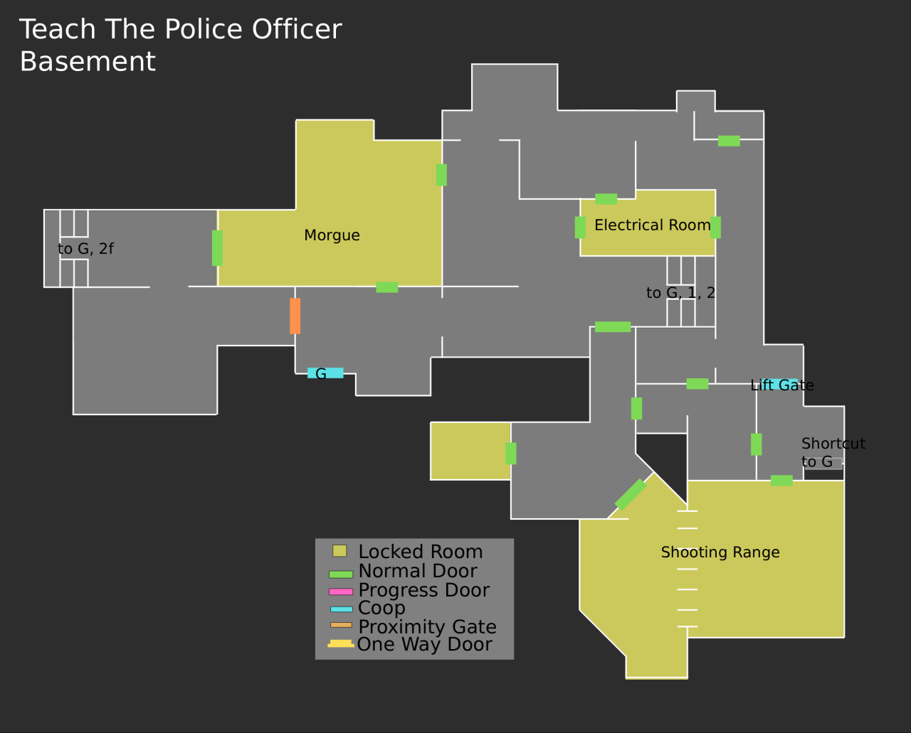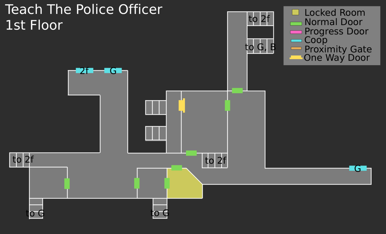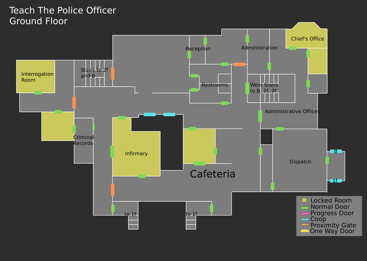 Edited map for Teach the Police Officer trial. Credits go to asapi for the original diagram, which you can see on his page. I wanted to add some more information due to how confusing the map is to navigate even with the map. Give him a thumbs up if you can, he did the hard parts.