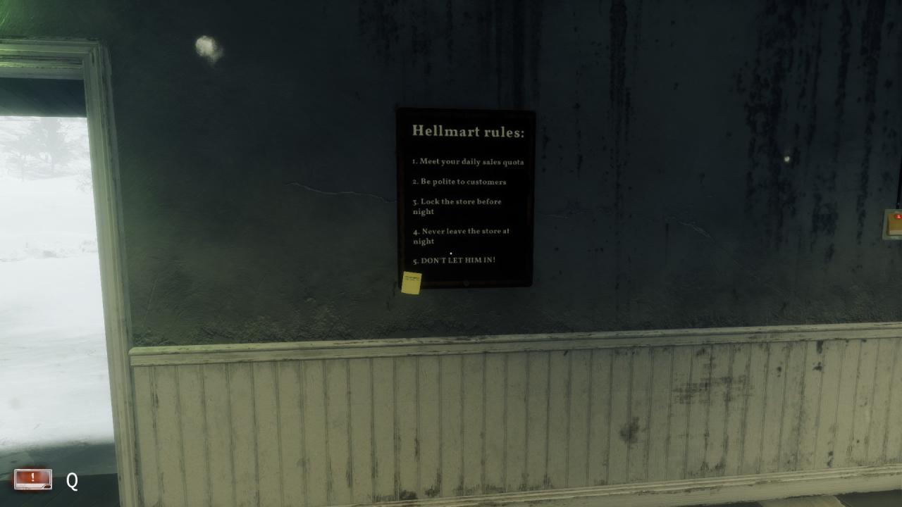 Inside on the “Hellmart Rules” board. (Day 1)