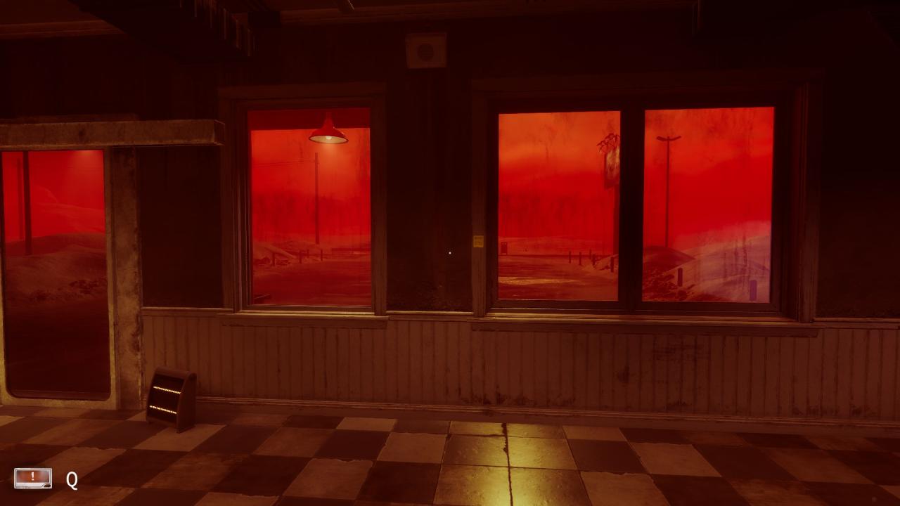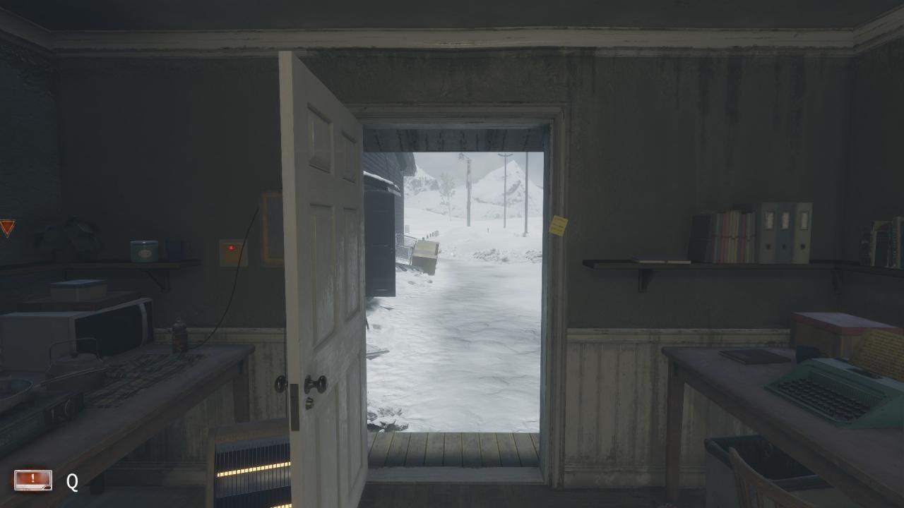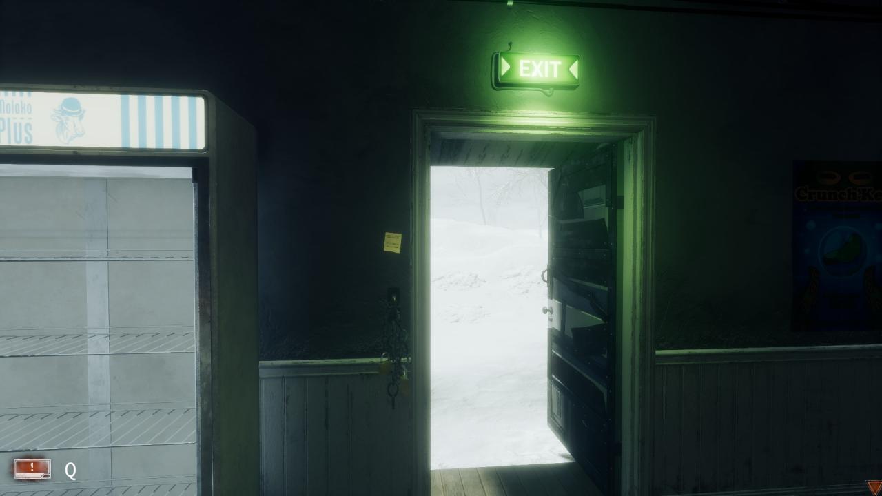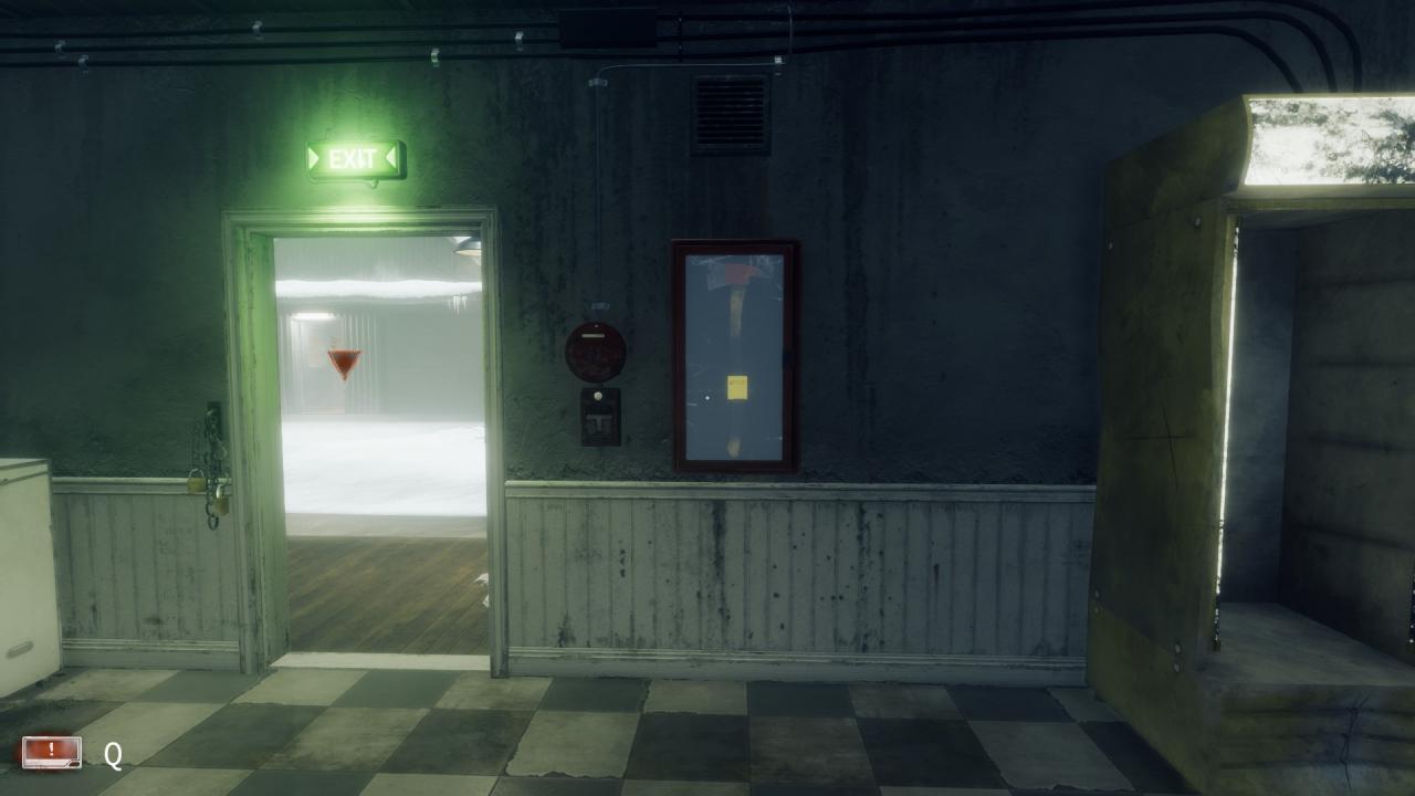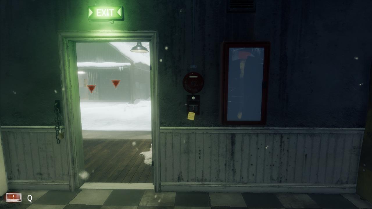 Inside, on door frame leading to outside near the break room. (Day 3)