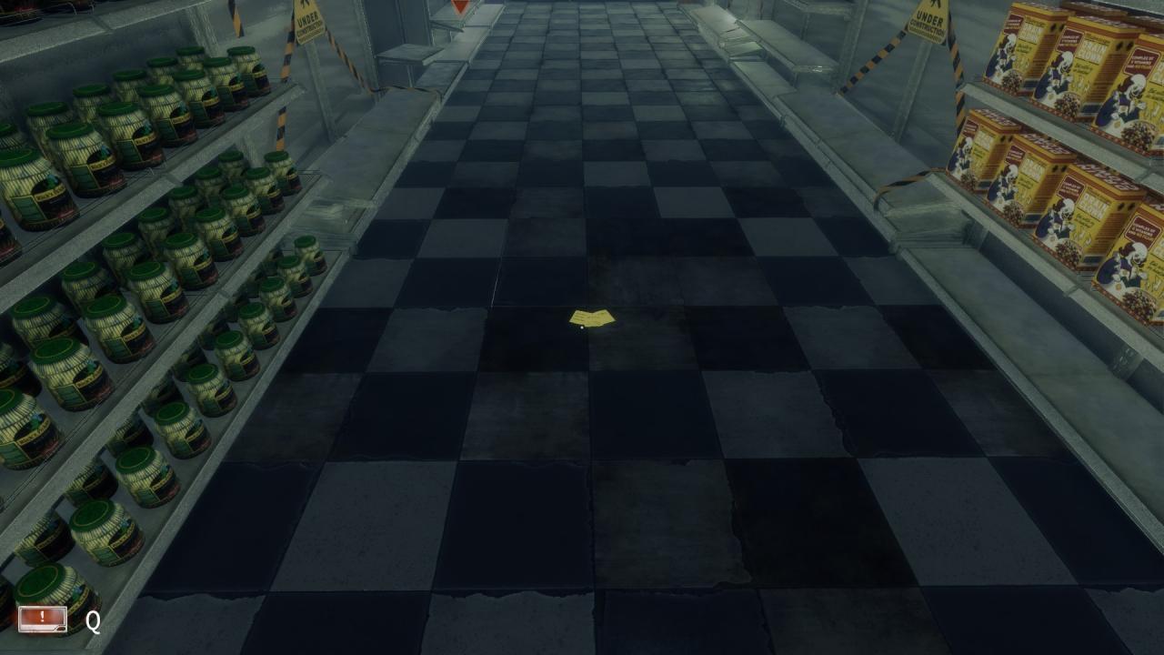 On the floor between aisles groceries and canned food. (Day 4)
