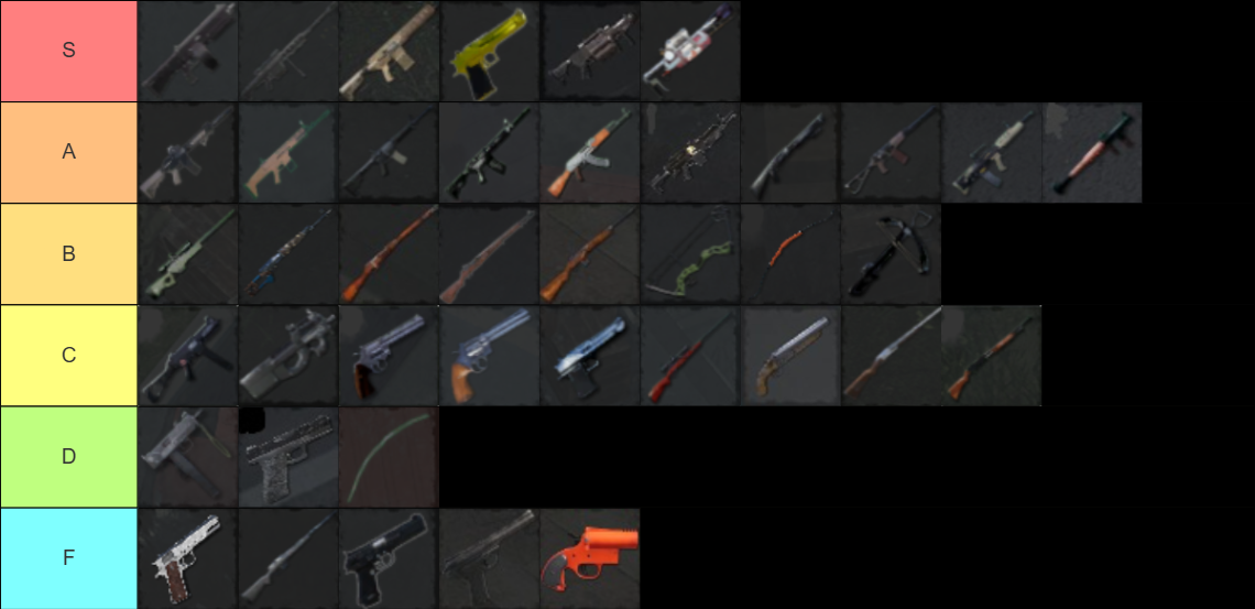 The tierlist may vary a lot by playstyle, some players like sniper rifles for long range kills and stealth, some tend to be in the center of action armed with a shotgun. I will focus mostly on the raw damage perspective WITH ease of use and weapon flexibility coming in as a differentiator WITHIN the tier.